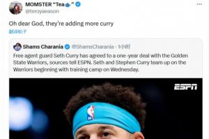 体育资讯10月01日讯 据Shams报道,勇士用一年合同签下赛斯-库里。