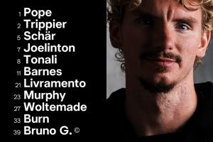 纽卡斯尔联首发:1-波普、2-特里皮尔、5-沙尔、21-利夫拉门托、33-丹·伯恩、7-乔林顿、8-托纳利、39-吉马良斯、11-巴恩斯、23-雅各布·墨菲、27-沃尔特马德