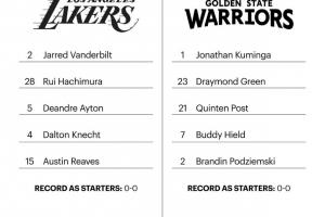 湖人:里夫斯、克内克特、八村塁、范德比尔特、艾顿;