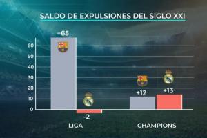 与此同时,在欧冠赛事中,红牌收益趋于平衡:巴萨+12,皇马+13。