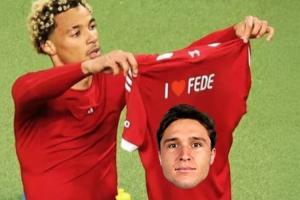 埃基蒂克晒出自己在对阵南安普顿的比赛中脱衣庆祝的照片,并在球衣上加上了小基耶萨的头像,并配文“我❤️费德(费德里科-基耶萨的昵称)”。