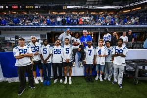 本场比赛,哈利伯顿带着众多队友到现场支持同城球队,除了哈利伯顿,其他步行者球员都穿着小马的球衣在场边为球队加油助威。