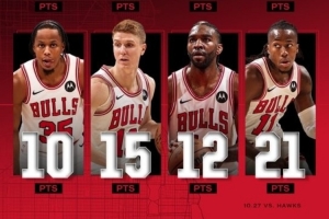 体育资讯10月28日讯 公牛主场128-123击退老鹰,取得开季3连胜。