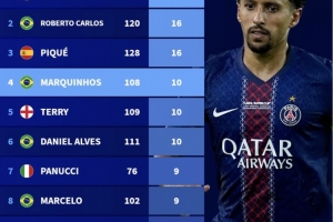 92-93赛季以来欧冠后卫进球榜:
