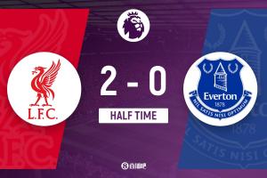 半场结束,利物浦暂2-0埃弗顿。